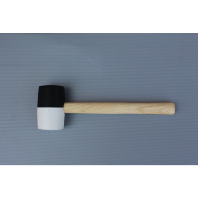 RUBBER HAMMER WITH WOODEN HANDLE(BLACK/WHITE)